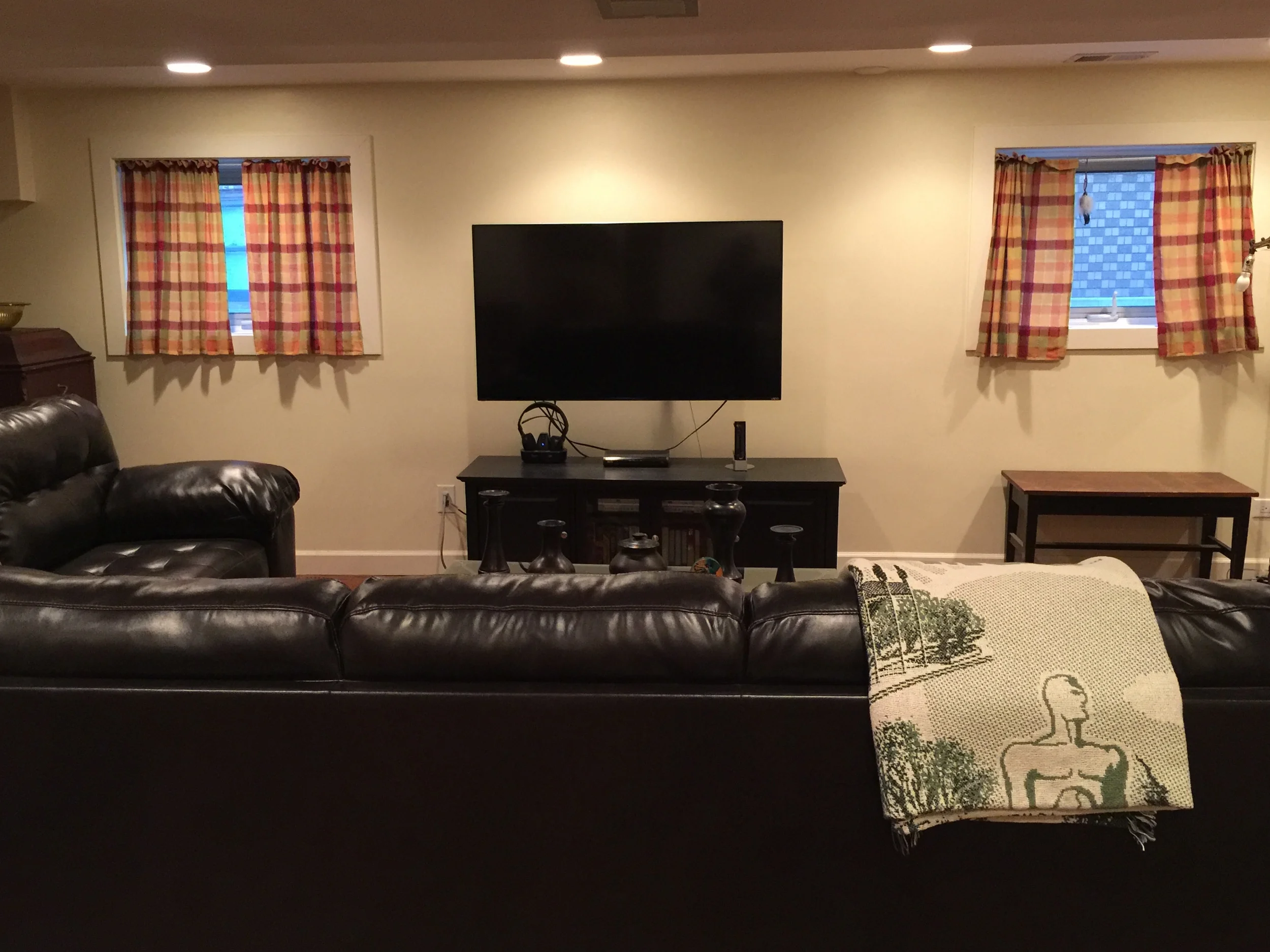 Notice the new entertainment center that works extremely well in this space, opening the top half of wall.